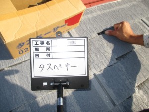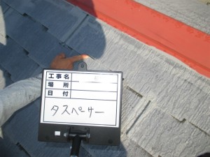 屋根の下塗り後にタスペーサーを取り付けます。