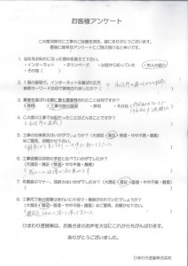 ご近所の奥様からの紹介で工事を依頼。なにぶん初めての事で何もわからず価格・工事内容の説明を重視して選びました。朝早くから来てくださり、一日中よく動いてくださって、工事のできばえも満足しております。